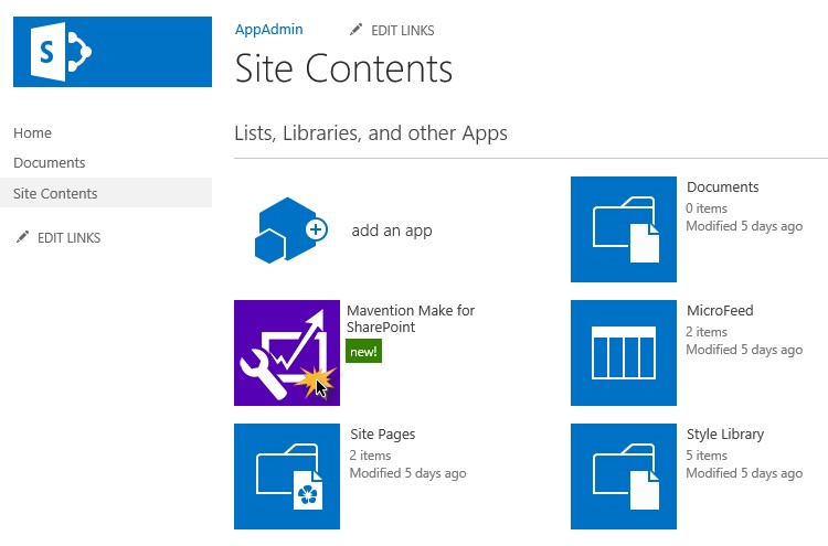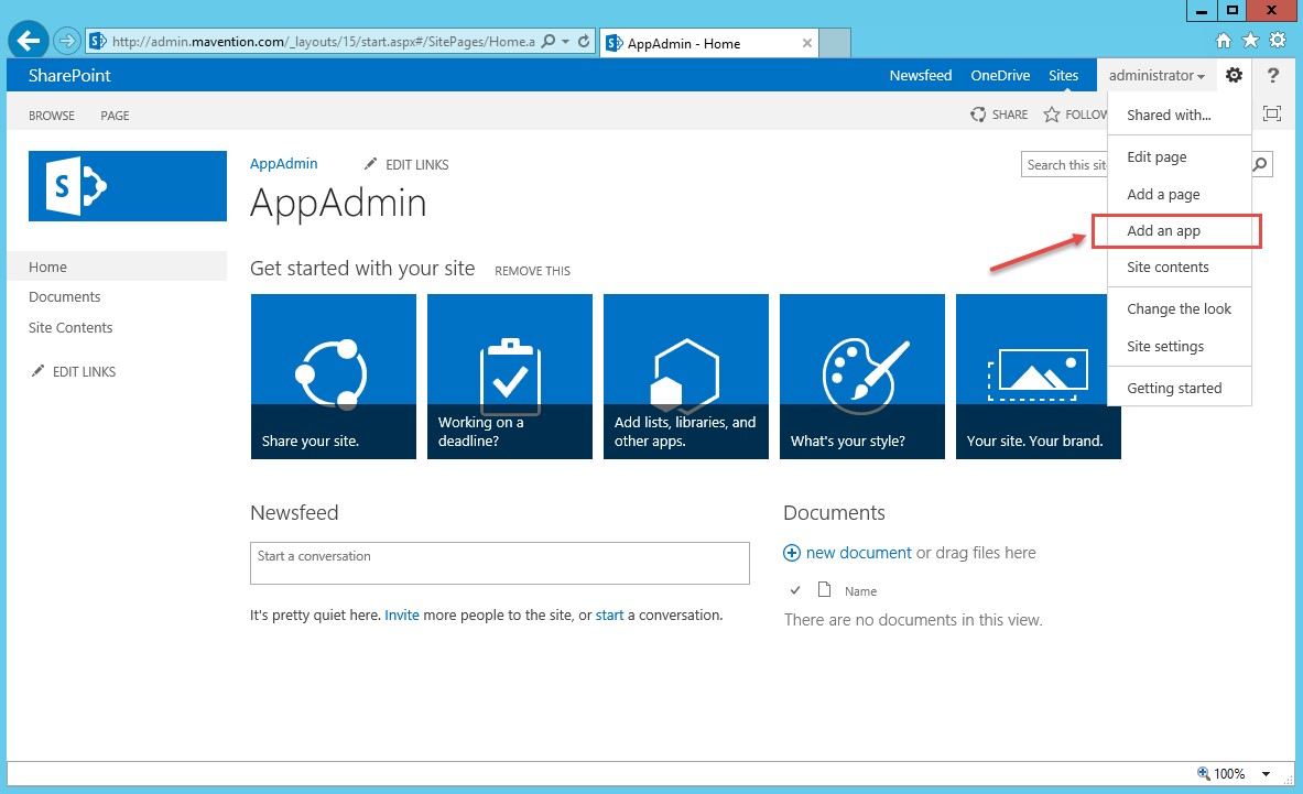 - Start your internet browser and navigate to the URL of the admin site that will be hosting and running the Make Add-in