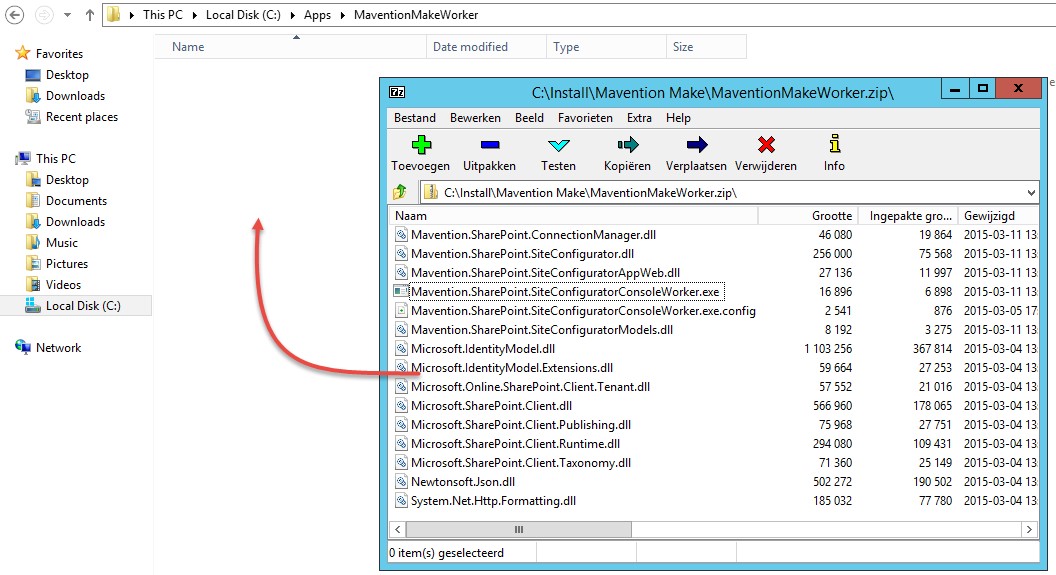 - Unzip the Mavention.Make.ConsoleWorker.zip file and store the contents in the D:\Apps\MaventionMakeWorker folder