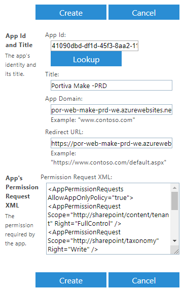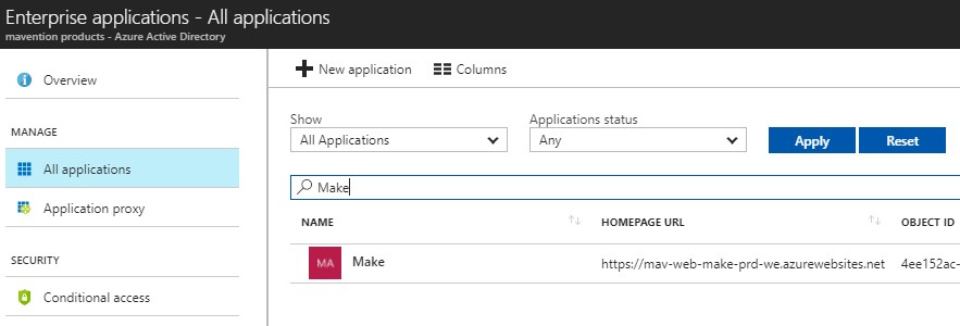 | AppRegistration | Name of the Make App Registration in Azure AD. E.g. “Make – DEV” |