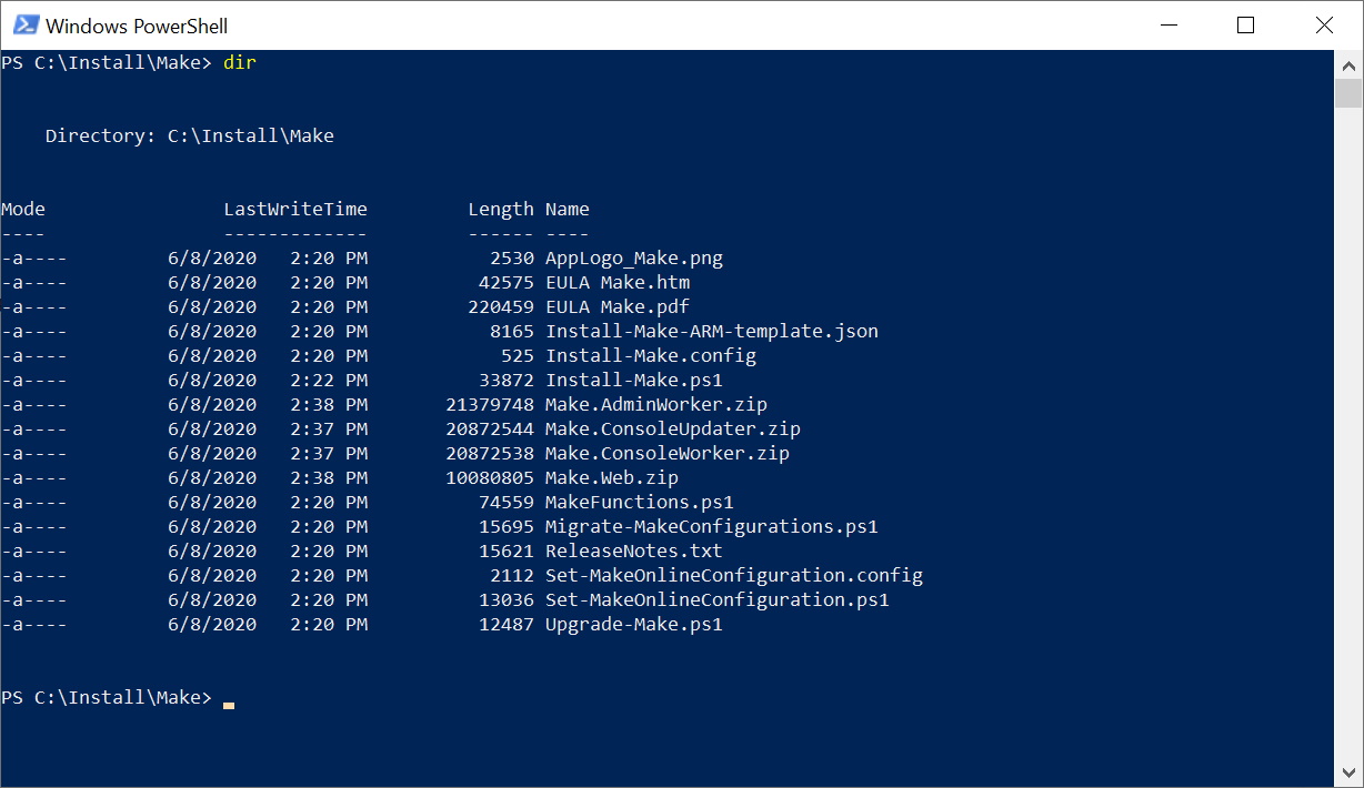 A sample configuration file (Install-Make.config) is present in the installation folder. To use a custom configuration file, call the PowerShell installation script as follows: