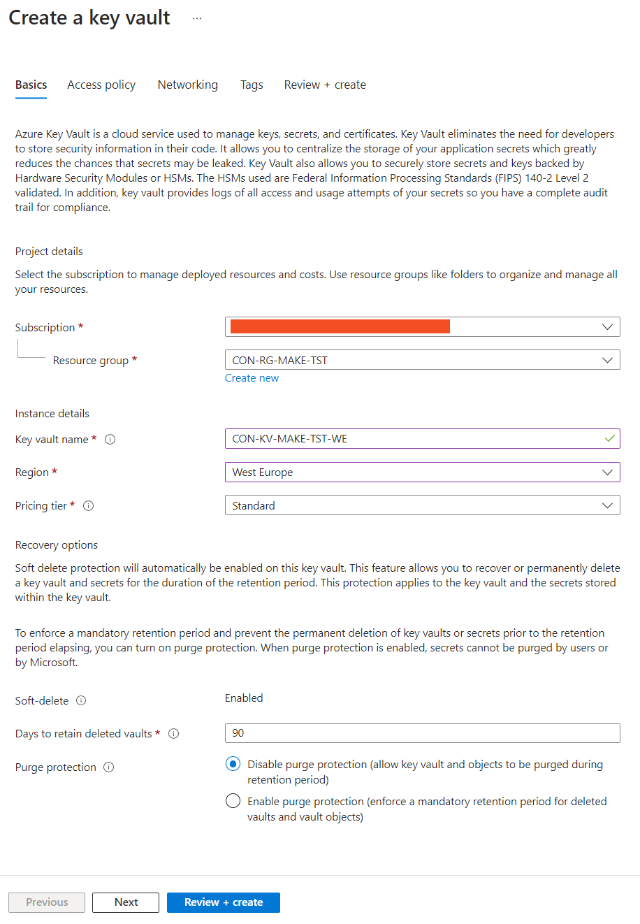 Figure 1: Create key vault