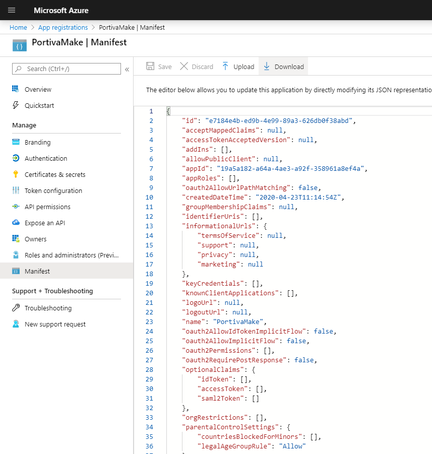 App registration Manifest
