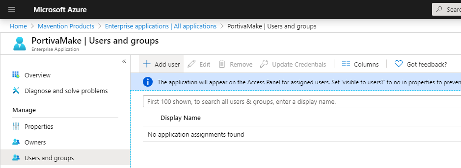 Also, to limit access to the Make Web Interface you can configure your Azure Application so that a user assignment is required.