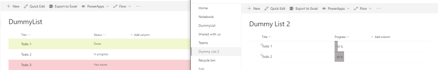 In a SharePoint list it’s possible to add view or column formatting.