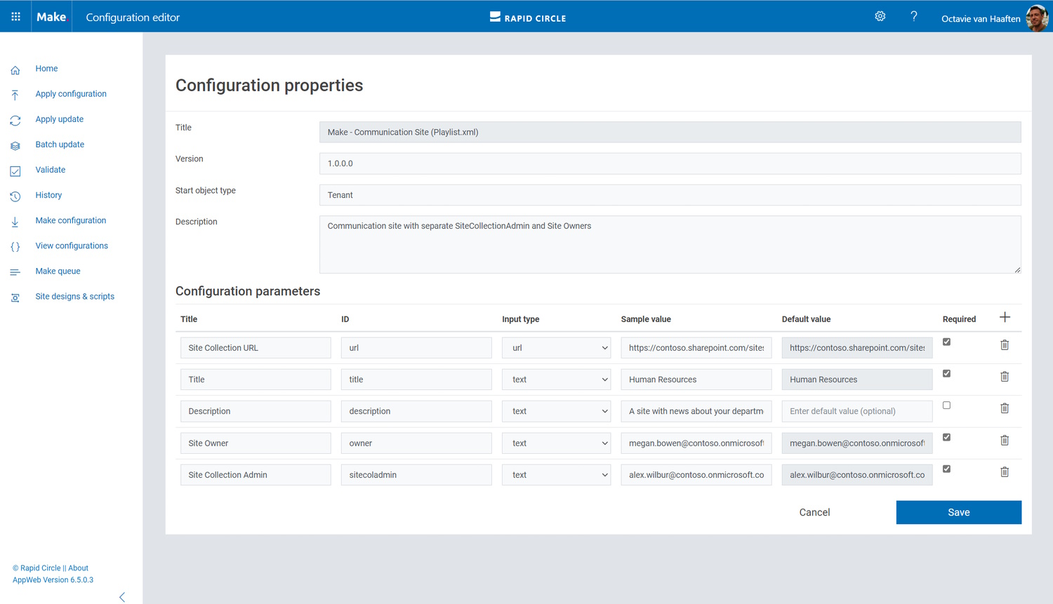 A configuration always requires 3 mandatory parameters: url, title and owner |